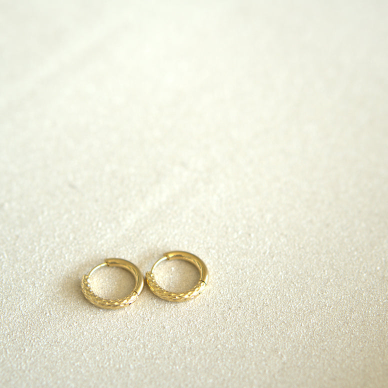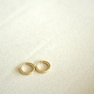These classic hoops are gently textured with a hammered finish—like a life full of scars and beauty.