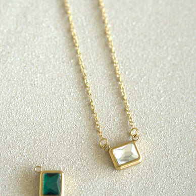 Featuring a square-cut crystal in a golden bezel, Miran sits close to the heart.